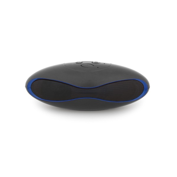 Caixa de som com microfone. ABS. Acabamento emborrachado. Com transmissão por bluetooth e 3W/4Ω. Autonomia até 3 h. Função para atender chamadas, controle de volume e conexão à playlist do dispositivo móvel. Incluso cabo USB para carregar. Fornecida em caixa presente.