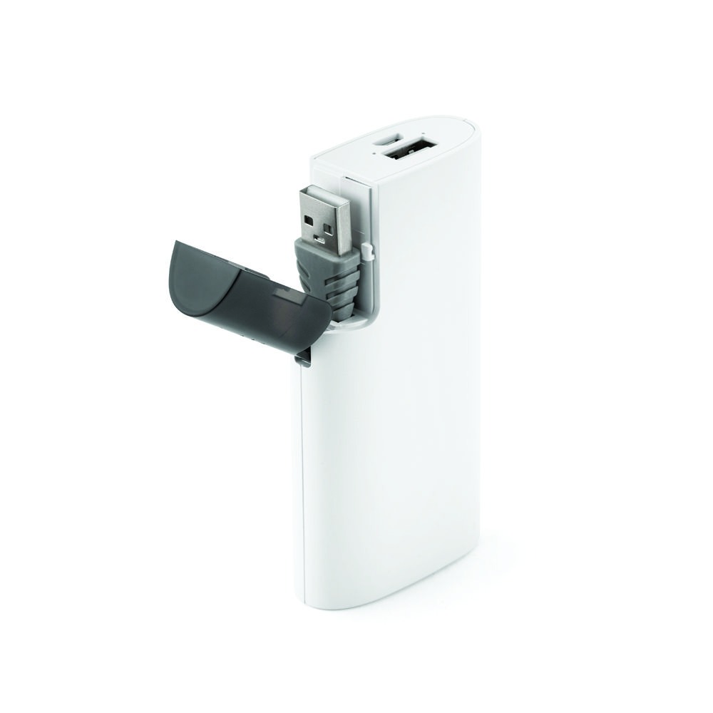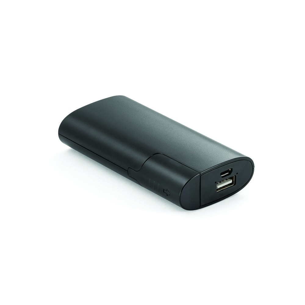 Bateria portátil. ABS. Bateria polímero de lítio. Capacidade: 4.000 mAh. Tempo de vida ≥ 500 ciclos. Entrada 5V/1A e saída 5V/1A. 1 porta USB. Incluso cabo USB/micro USB para carregar a bateria. Fornecido em caixa presente.