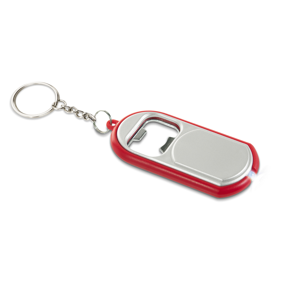 Chaveiro. Com LED e abridor de garrafas. Incluso 2 pilhas LR41.
