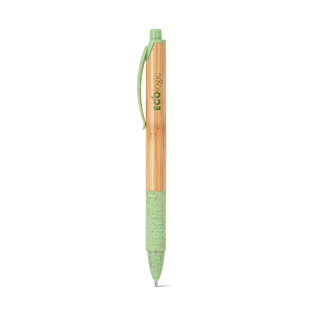 Esferográfica. Bambu. 1,5 km de escrita. Elementos em fibra de trigo e ABS.