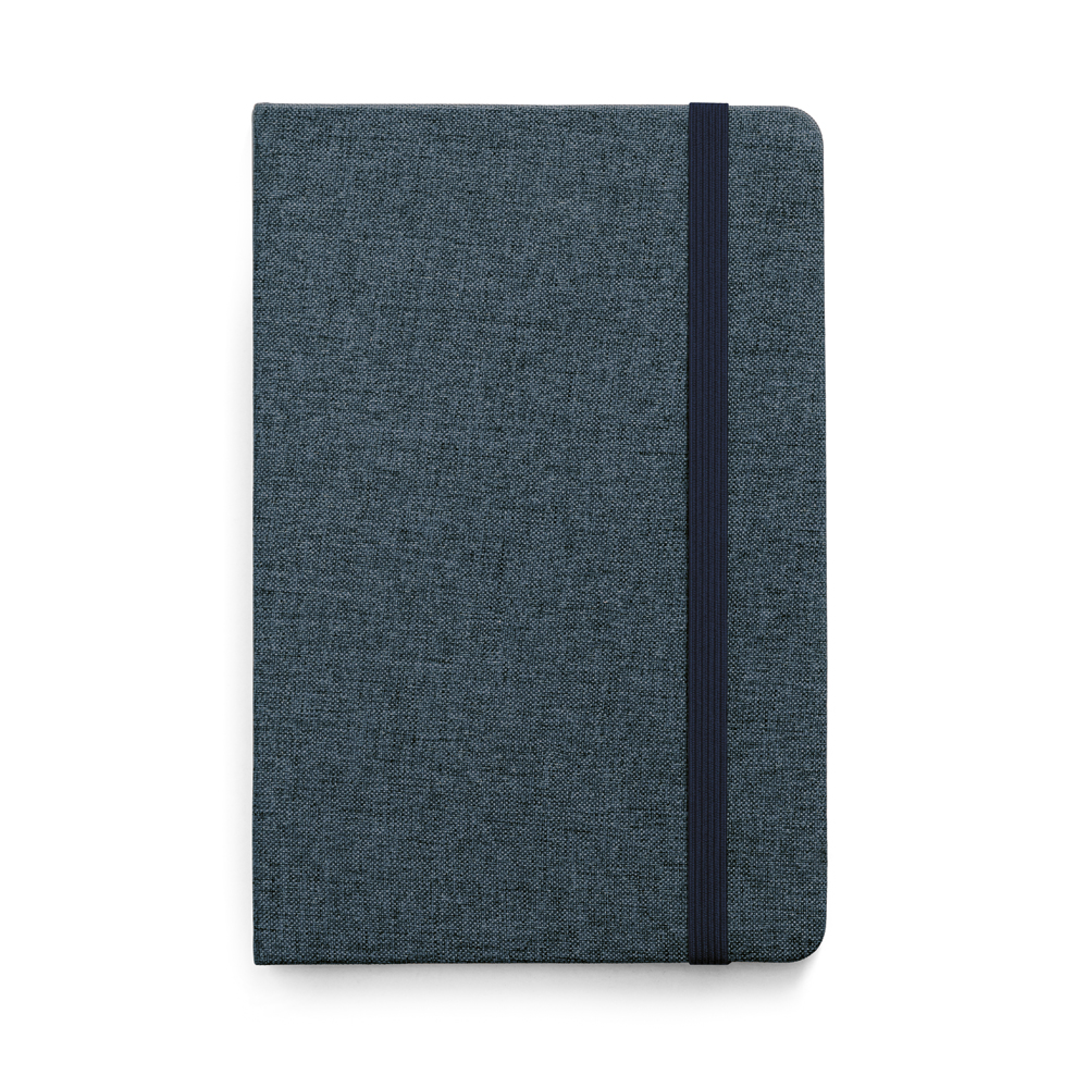 Caderno capa dura. Tecido em poliéster. 80 folhas pautadas cor marfim.