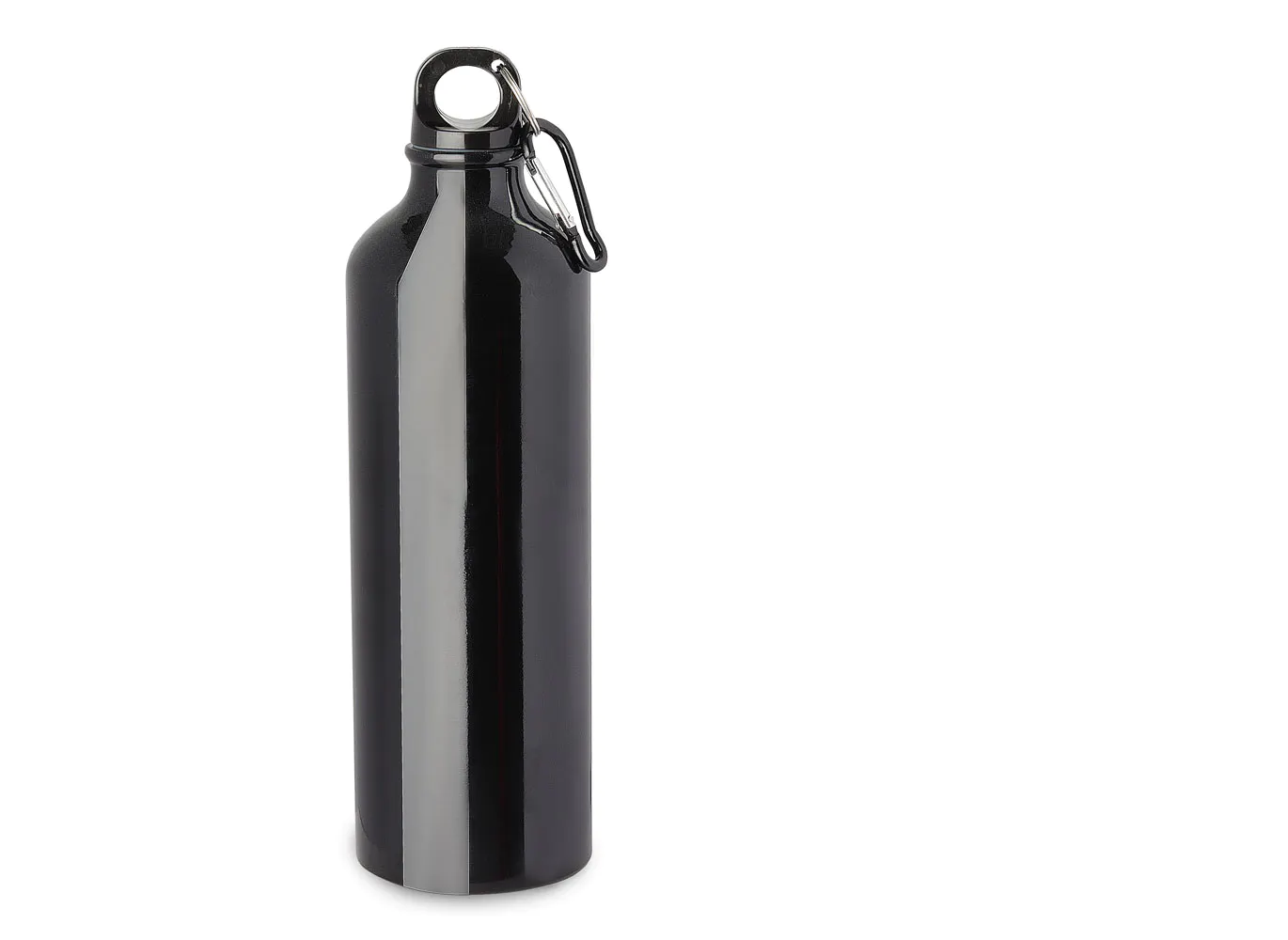 Garrafa em alumínio, tampa de plástico com mosquetão colorido. Capacidade de 750ml, com pintura