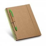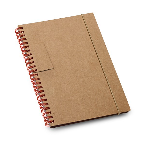 Caderno B6 espiral com 60 folhas pautadas de papel reciclado e capa dura em cartão com suporte para esferográfica (não inclusa).