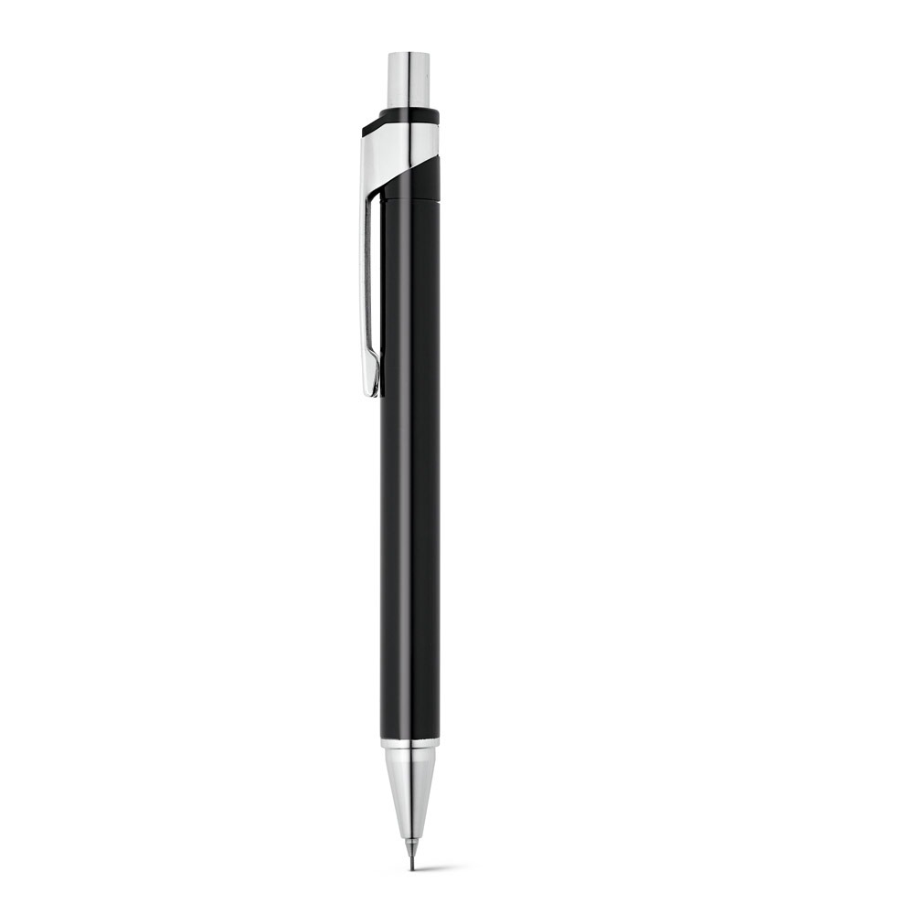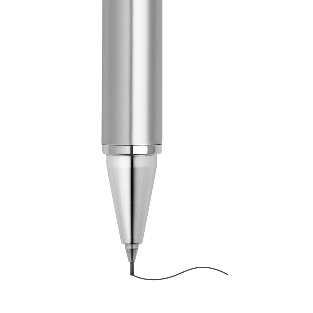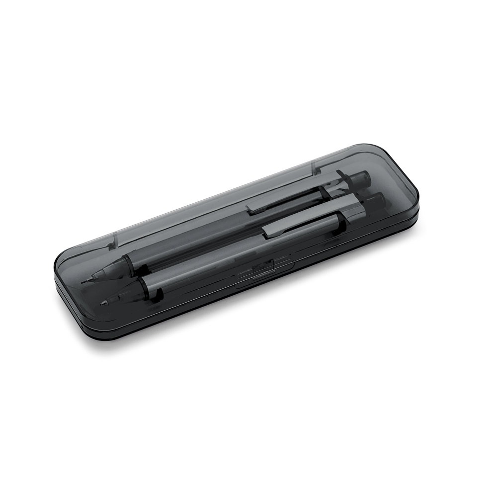 Conjunto de esferográfica e lapiseira em alumínio. Esferográfica até 1,5 km de escrita. Lapiseira com grafite 0.5 mm. Incluso estojo.