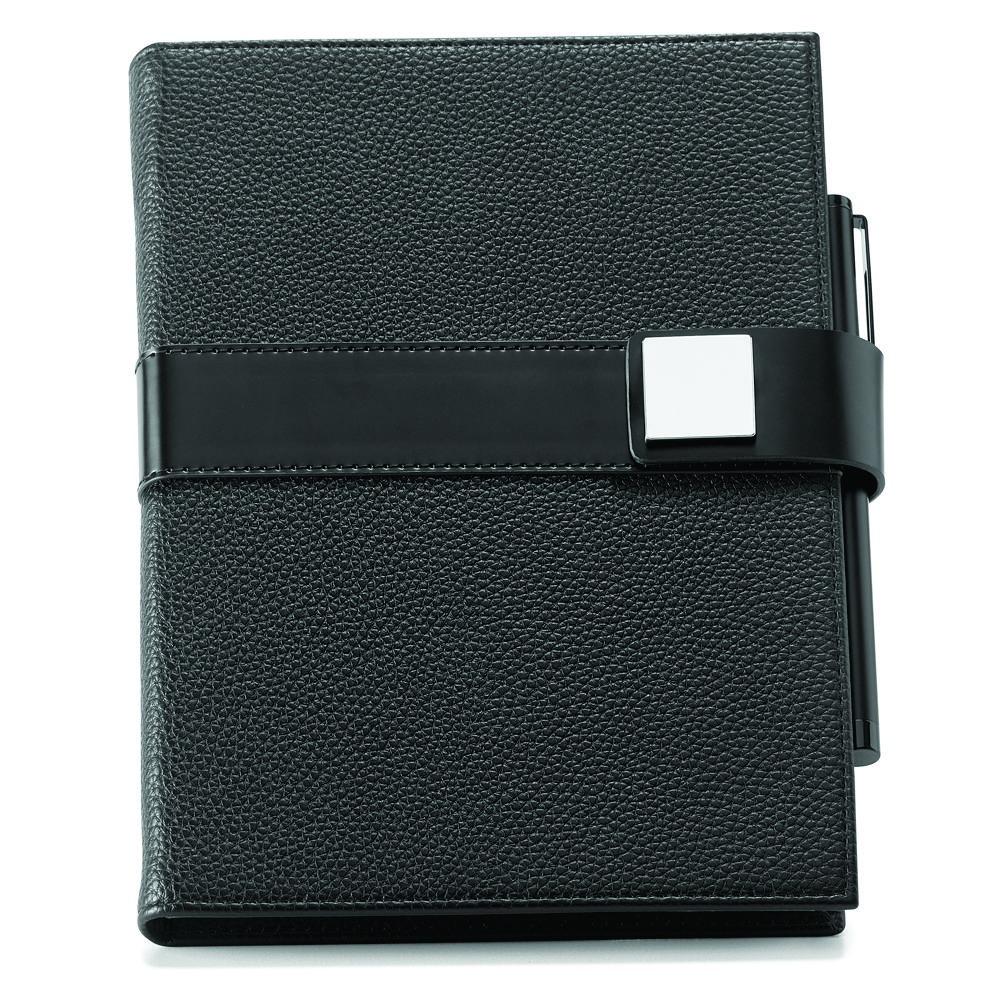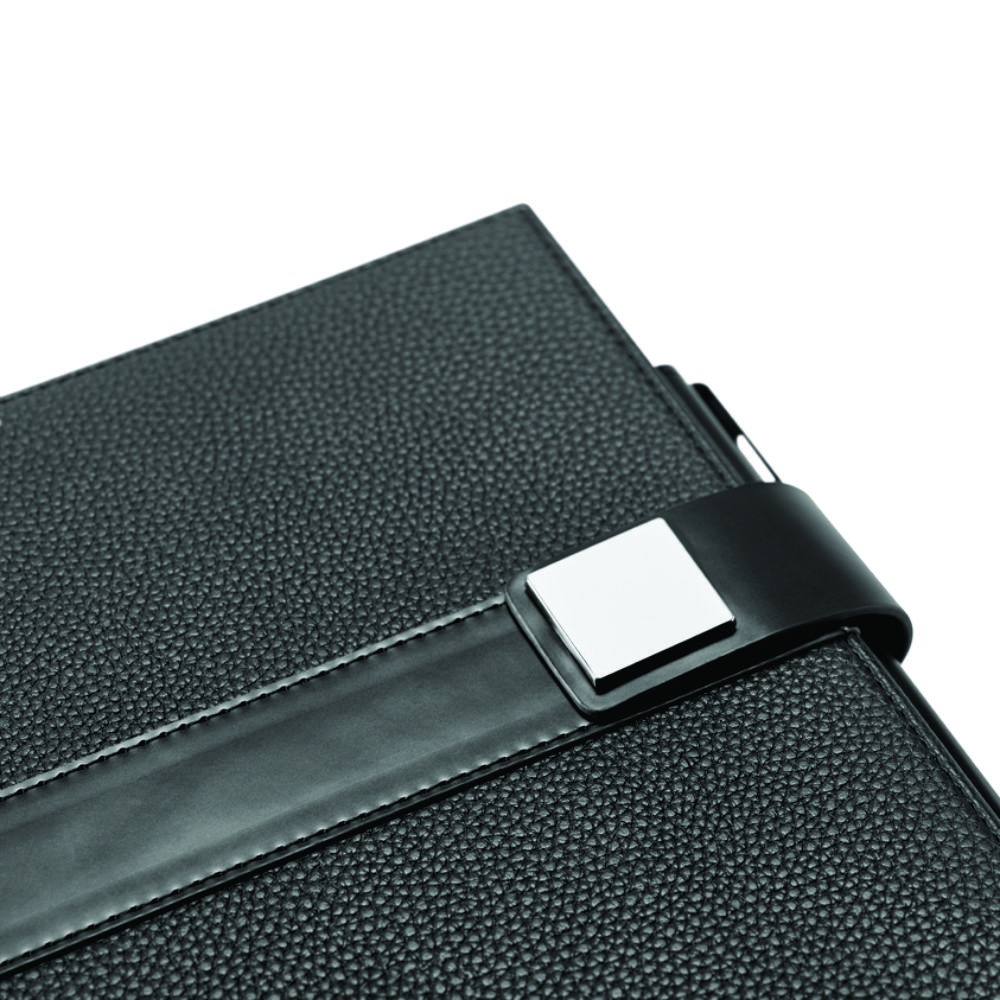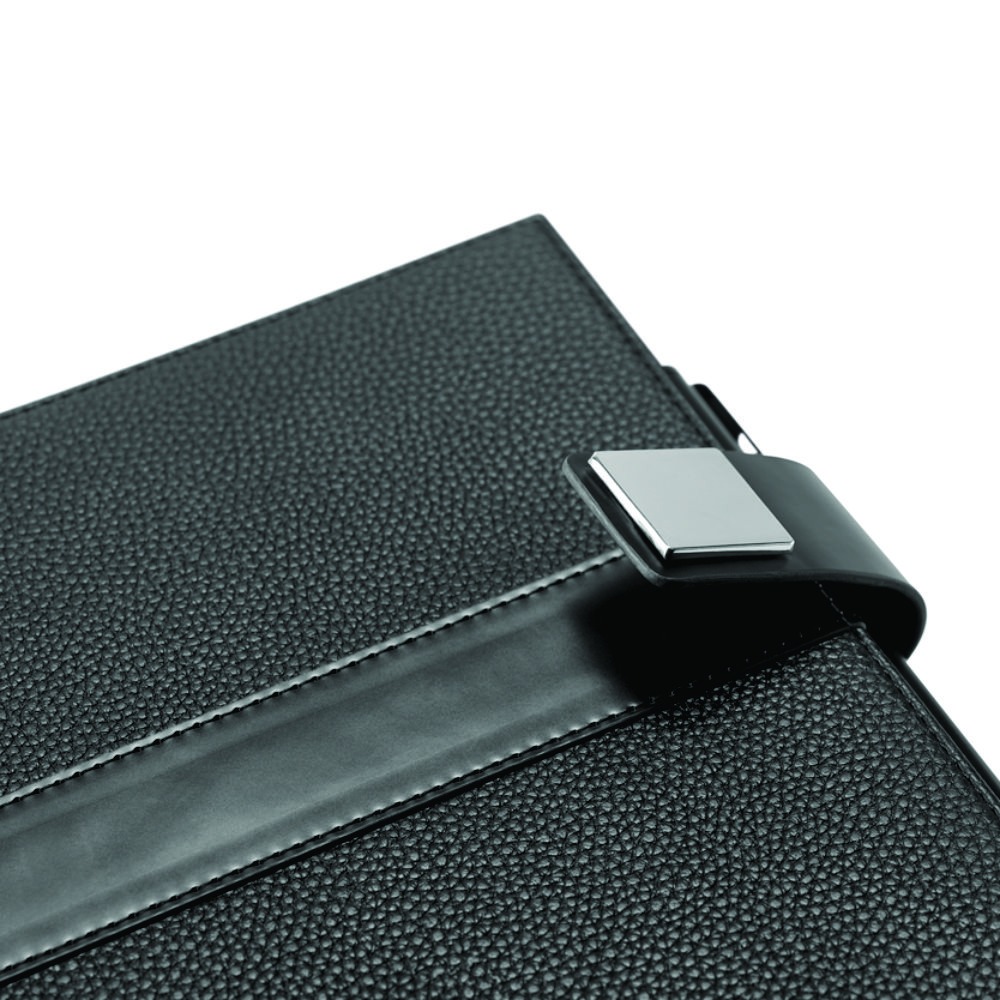 O EMPIRE é um caderno A5 de design moderno, minimalista e com toque business. A capa rígida em polipele protege o seu interior que, de forma inteligente, se divide em três partes distintas com um separador que permite identificar cada uma das partes. As suas 120 folhas dividem-se proporcionalmente por folhas não pautadas, pautadas e pontilhadas. O seu design minimalista é complementado pelo detalhe metálico no fecho, característico desta linha de produtos e que reforça a sua elegância. Produto fornecido com suporte de esferográfica (não inclusa) e em caixa presente.