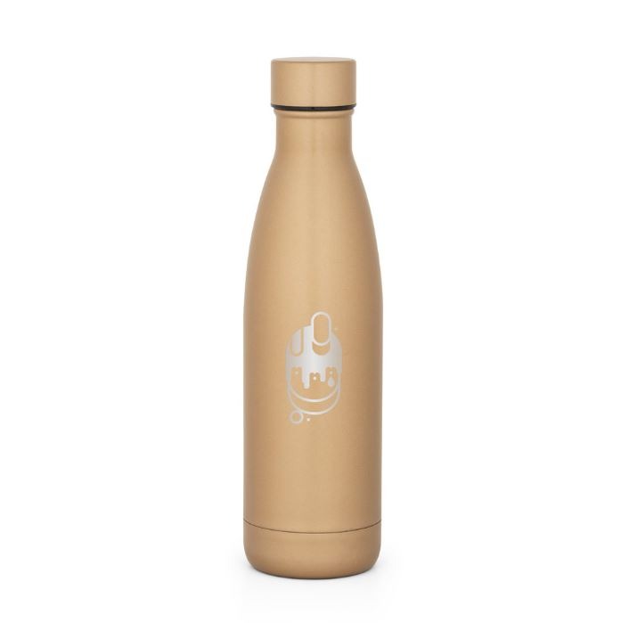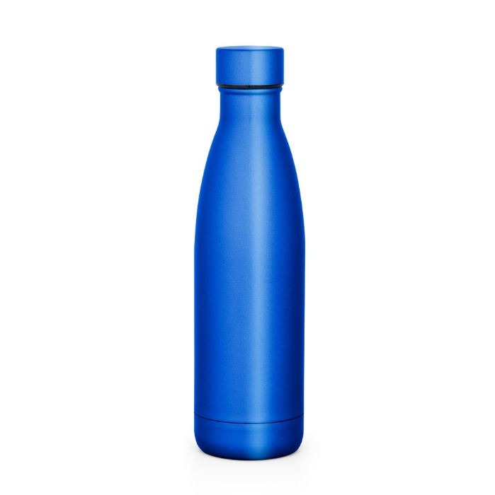 Garrafa térmica em aço inox com parede dupla e tampa com sistema de vácuo. Capacidade até 580 ml. Food grade. Fornecida em caixa branca.