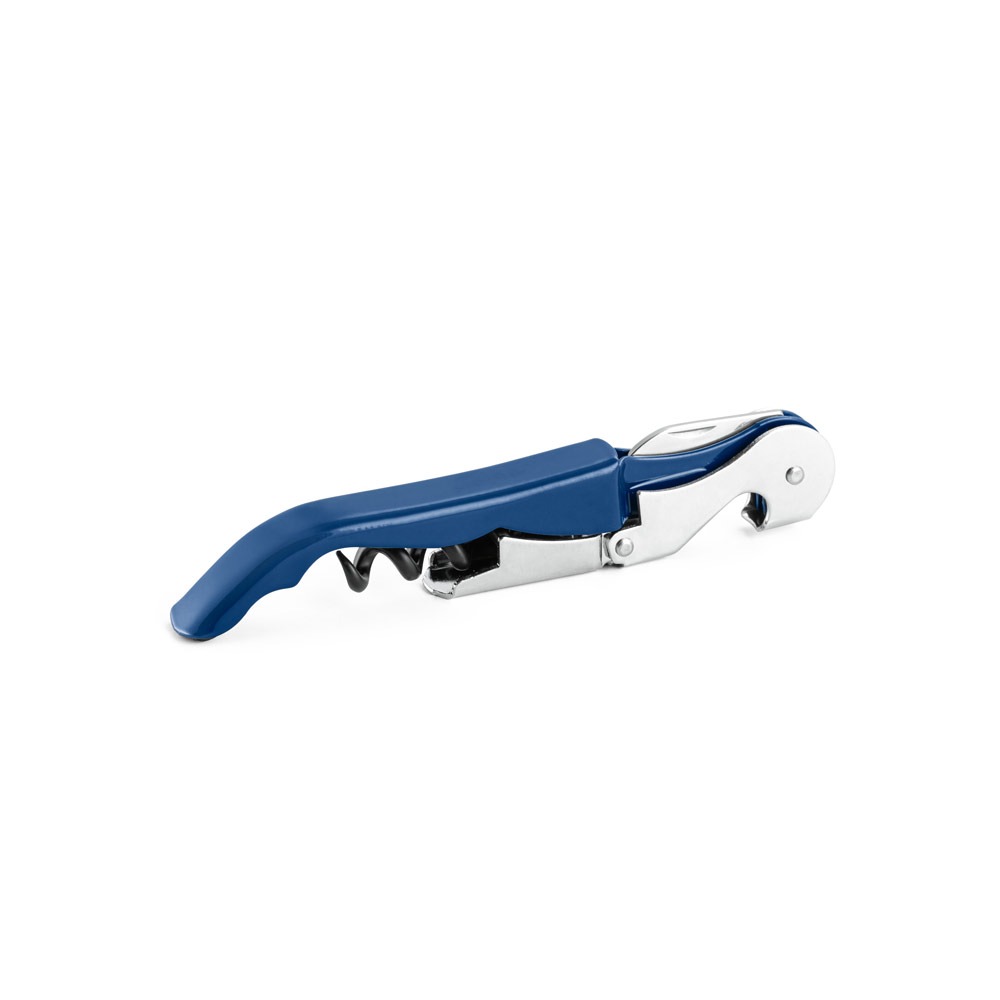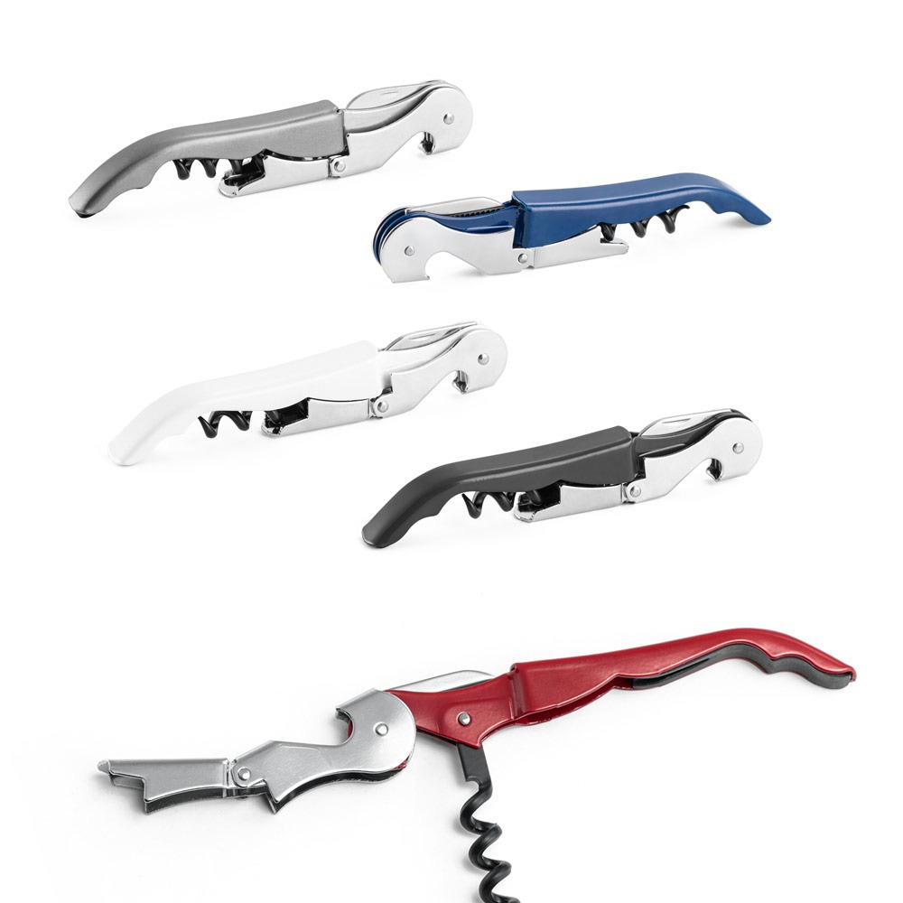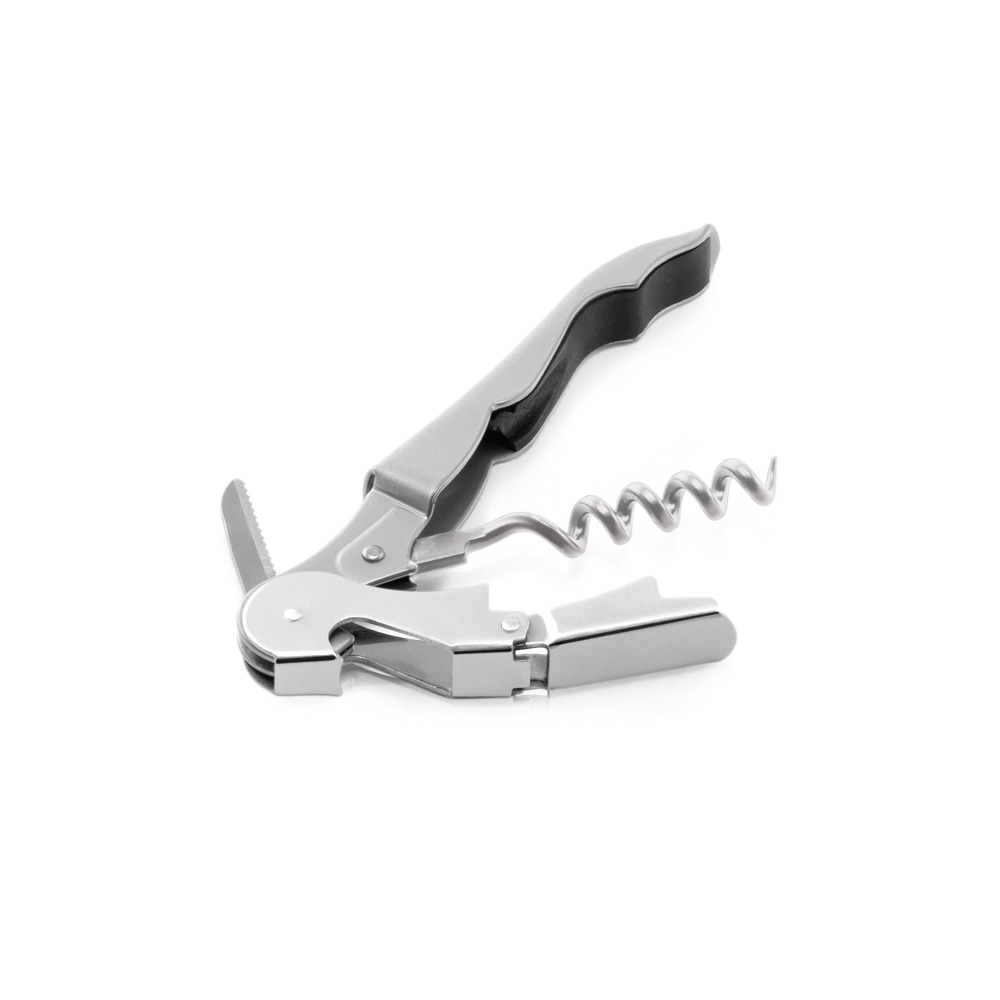 Saca-rolhas em metal e PP com abridor de garrafas e canivete de sommelier. Espiral em aço inox.