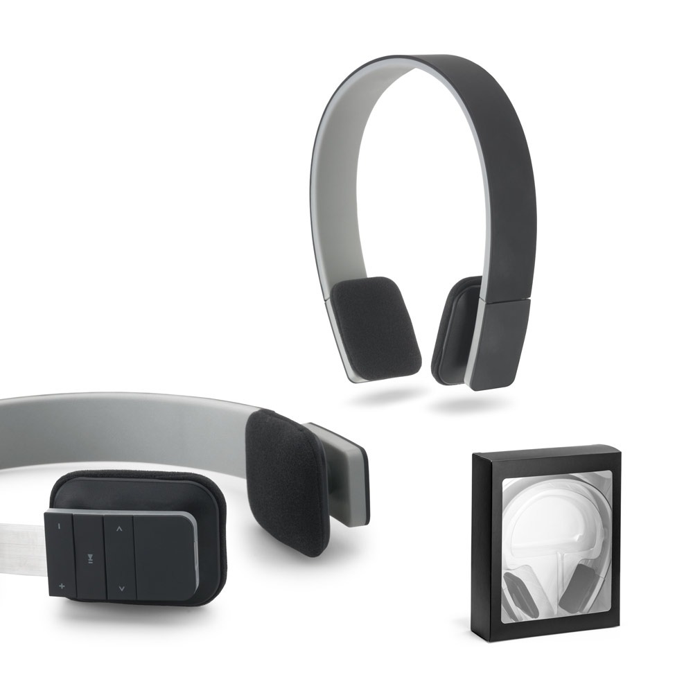 Fone de ouvido ajustáveis em ABS, com acabamento emborrachado e transmissão por bluetooth. Autonomia até 5 h. Função para atender chamadas, controle de volume e conexão à playlist do dispositivo móvel. Permite emparelhamento com 2 dispositivos móveis em simultâneo. Incluso cabo USB/micro USB para carregar. Fornecido em caixa presente.