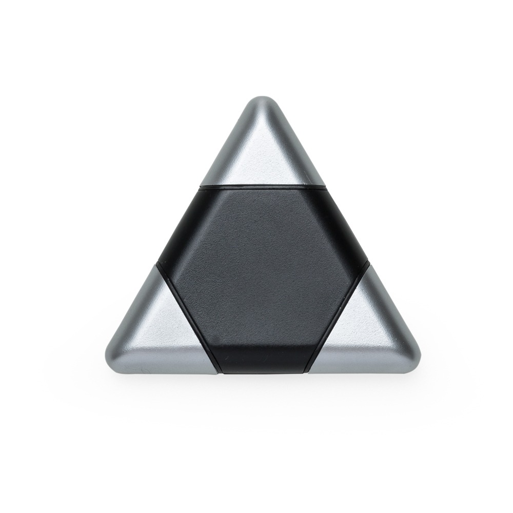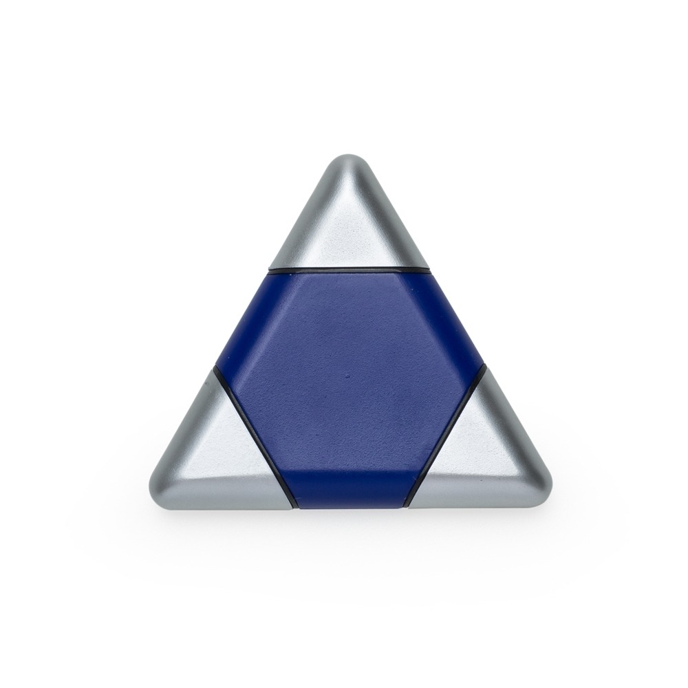 Kit ferramenta triangular plástico com 3 peças. Material plástico colorido com três tampas prata, ao puxá-las contém: duas chaves philips de tamanhos diferentes e uma chave de fenda.