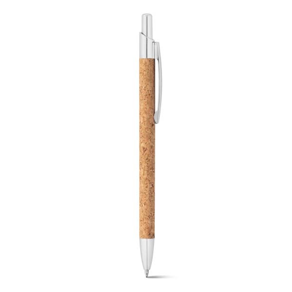 Esferográfica. Cortiça e alumínio. 1,5km de escrita. Fornecida com embalagem presente em cartão.