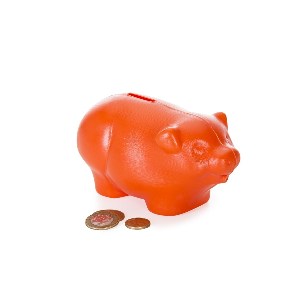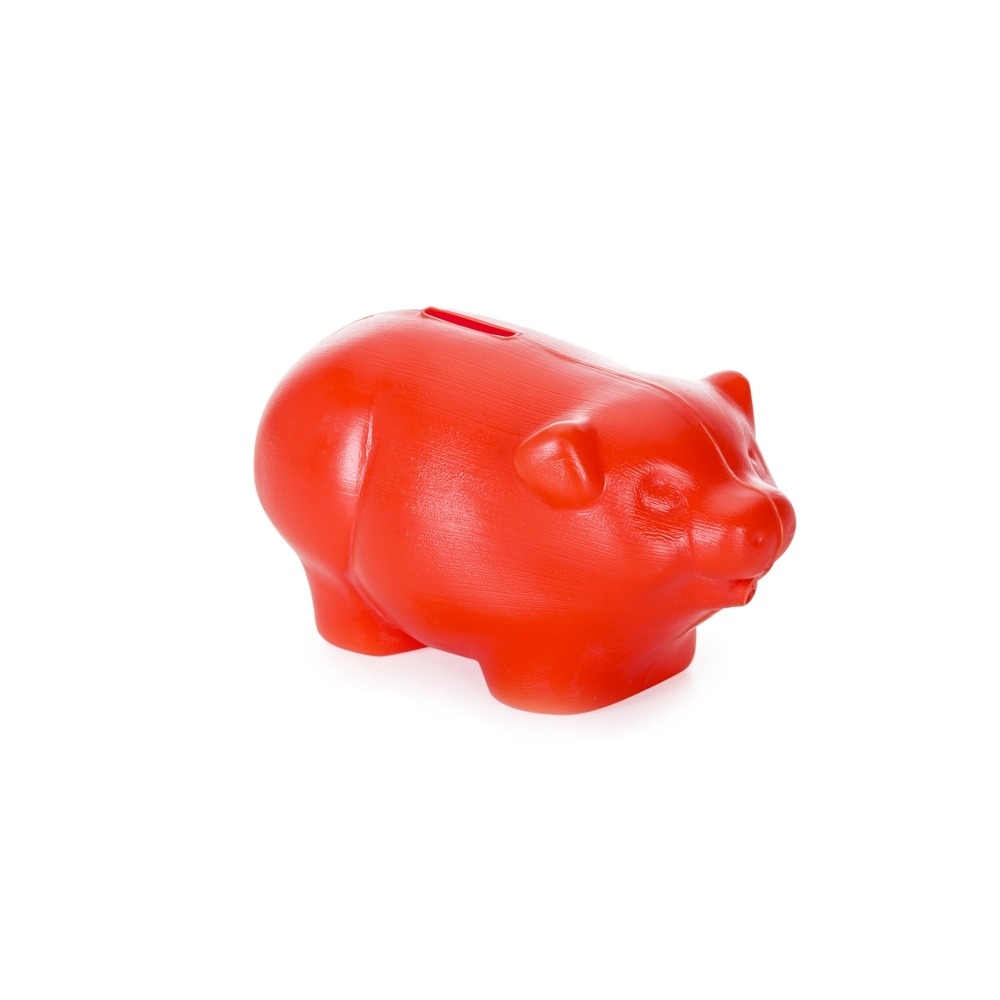 Cofre plástico formato porquinho, inteiro colorido.
